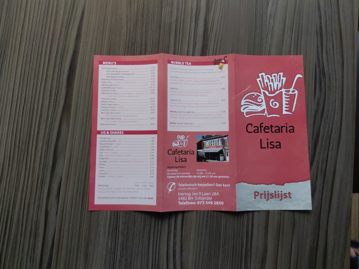 Cafetaria Lisa Menu